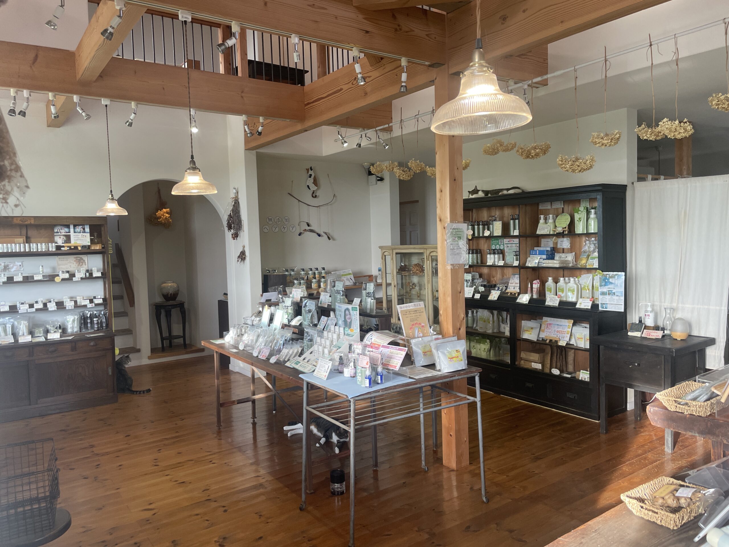 店内はメディカルアロマの香りで癒されます。 敏感肌・ニキビの方に安心なパラベン、合成香料、合成着色料フリーの化粧品・シャンプー・メディカルアロマ精油・石けん類・オーガニックお茶なども取り扱っています。